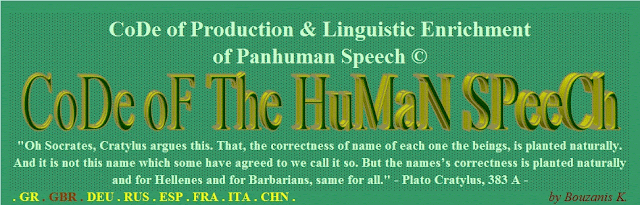 Αφ' ότου έχετε εξοικοιωθεί, κατεβάστε και ρίξετε μια ματιά στον Κώδικα της Γλωσσικής Παραγωγής και του Εμπλουτισμού του Πανανθρώπινου Λόγου [Do not go ahead before you take a look at the Code of Language Production and Enrichment of the Pan-Human Speech]